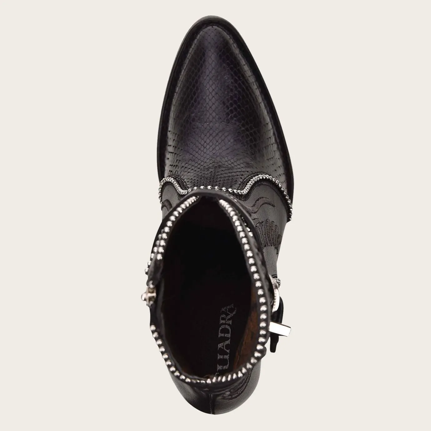 Step Into Fashion With Our Unique Women’S Genuine Python Embroidered Black Leather Bootie.