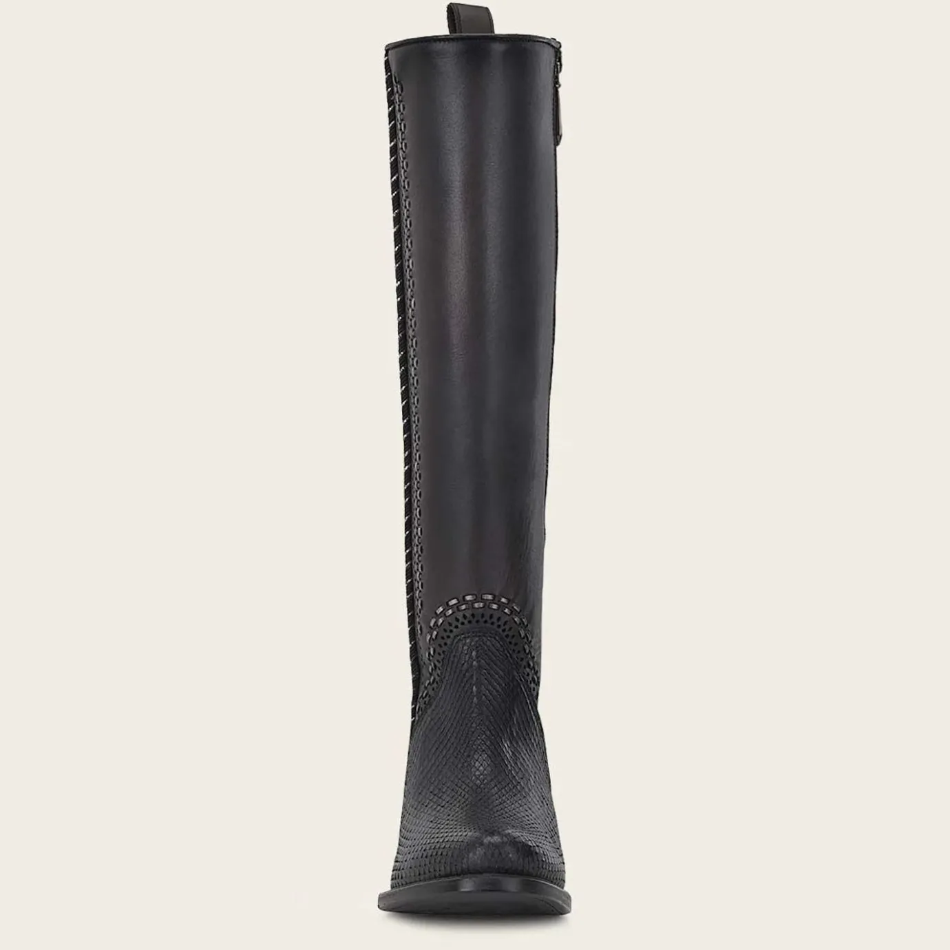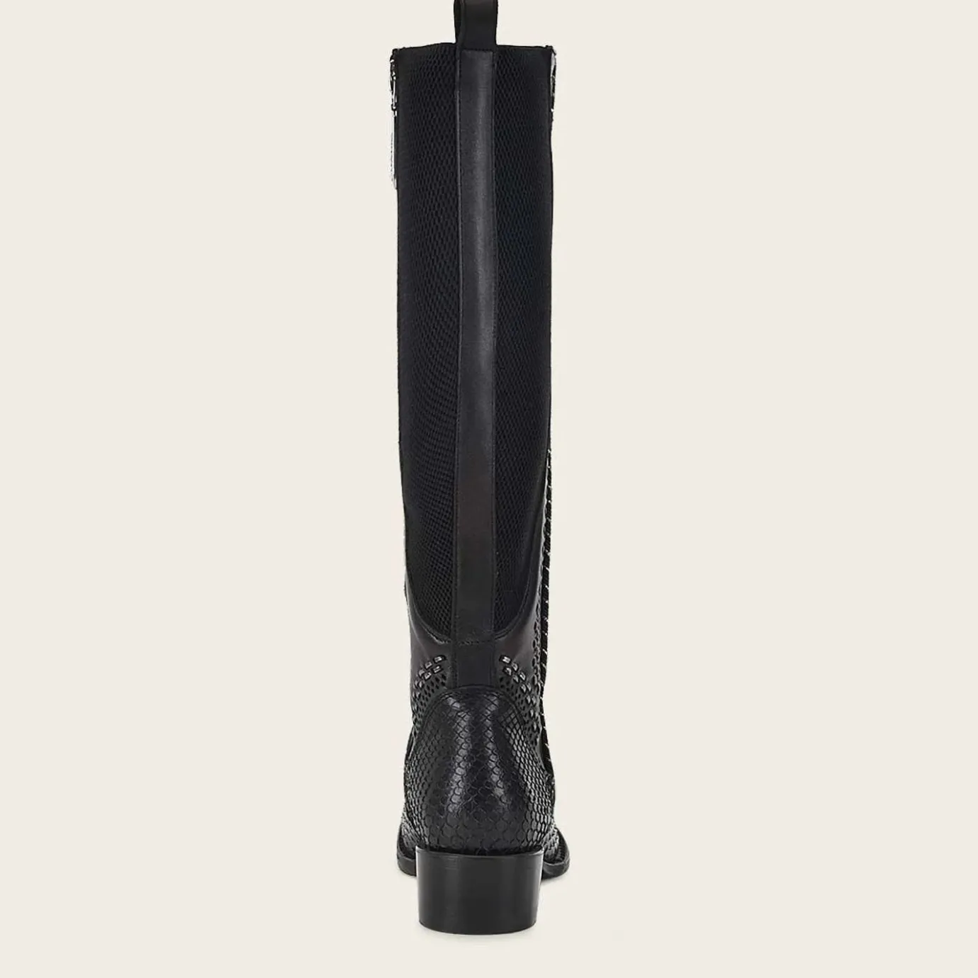 >High Boot For Women In Genuine Python And Bovine Leather.