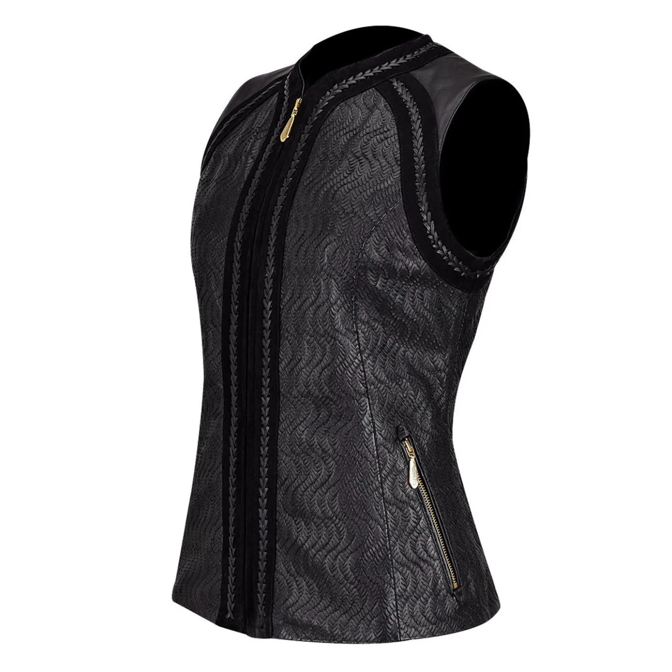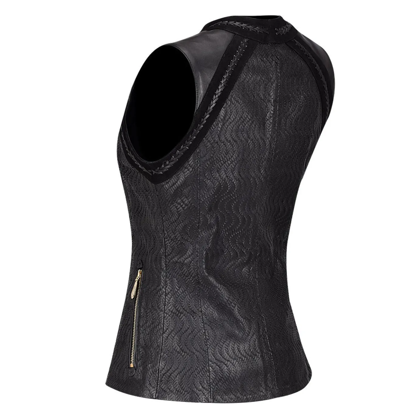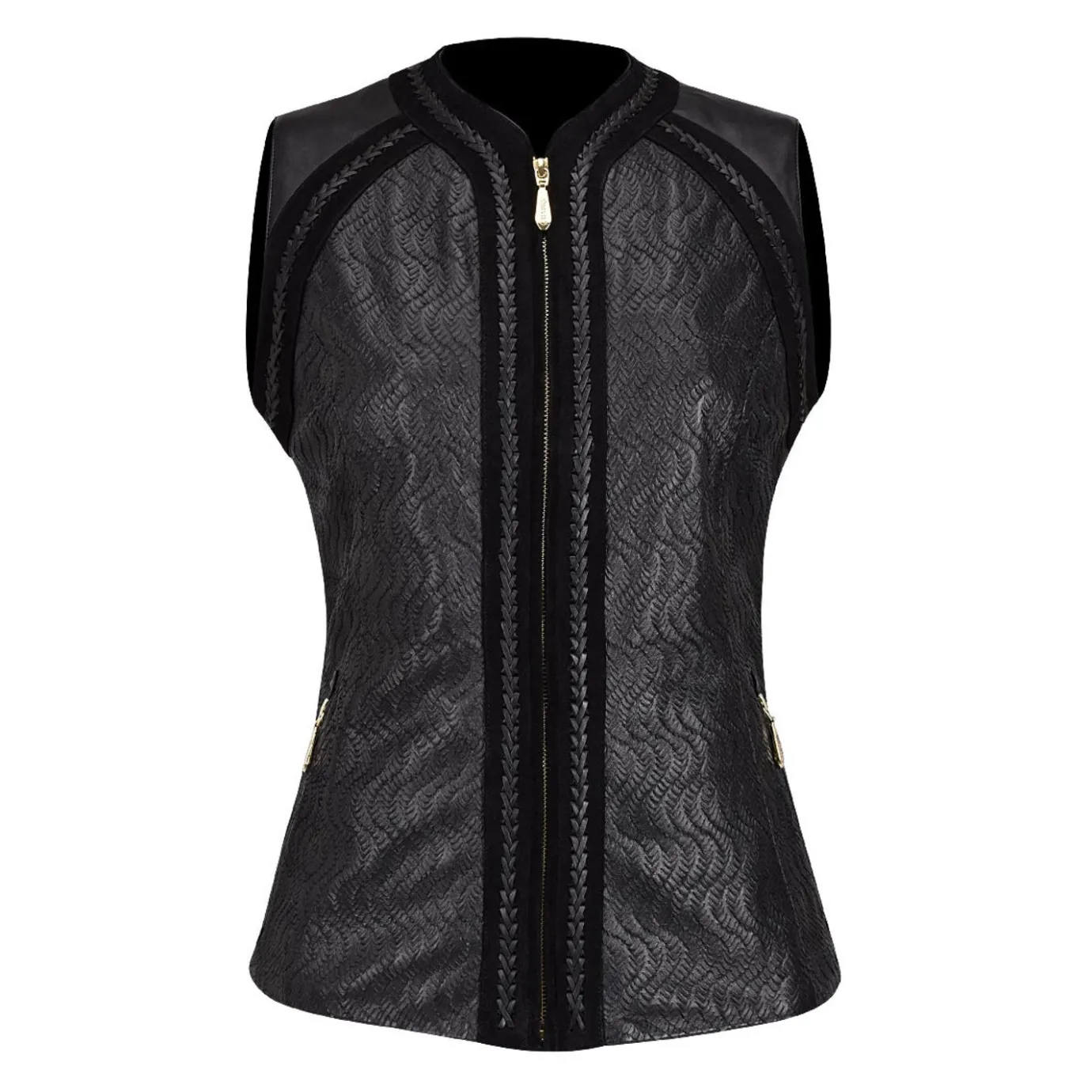 >Introducing The Womens Formal Black Leather Vest, A Chic And Versatile Addition To Your Closet. This Exquisite Piece Combines Timeless Style With A Touch Of Modernity, Making It A Perfect Choice For Various Occasions.